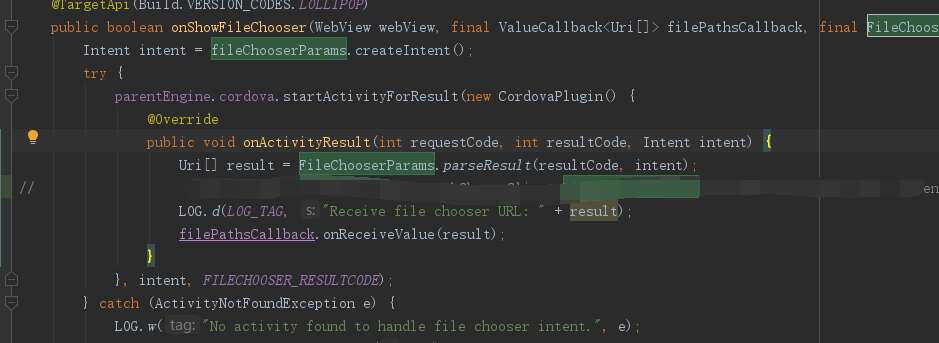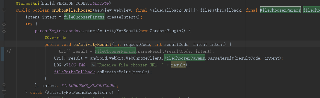 Uri[] result = FileChooserParams.parseResult(resultCode, intent);